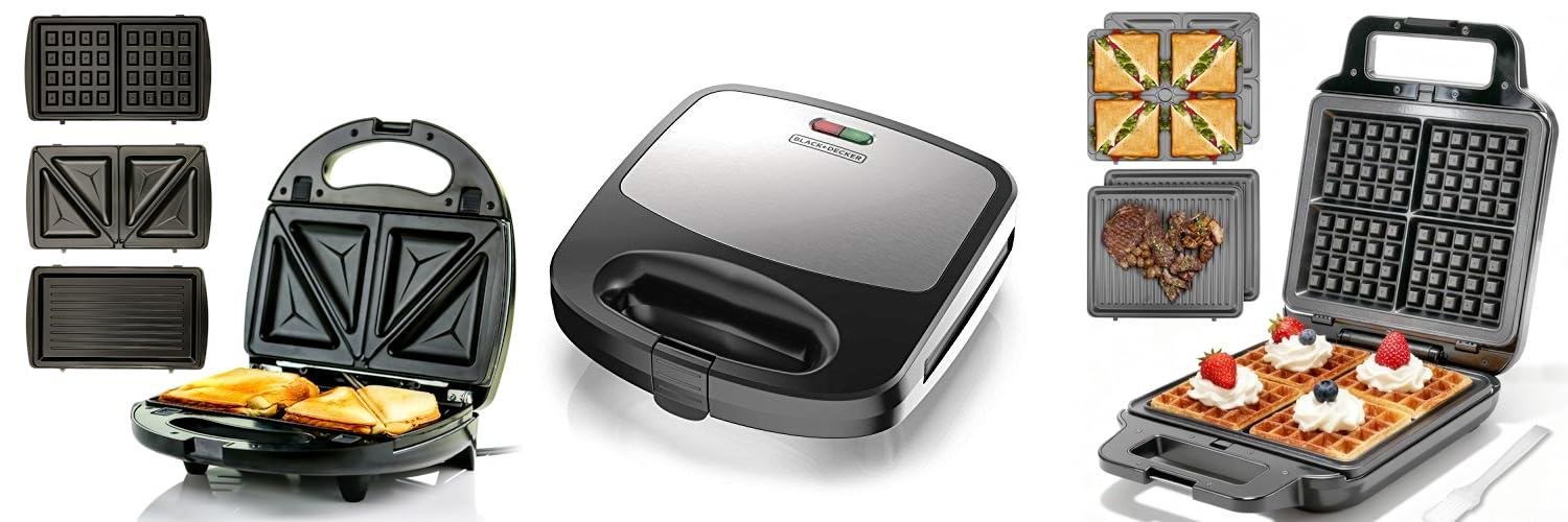 • It’s a multi-functional appliance with interchangeable plates for sandwiches, waffles, and grilling.
