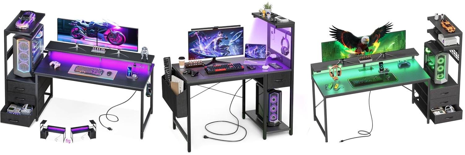 Level up your gaming and workspace with the AODK 59 Inch Gaming Desk. This desk is packed with features to make your setup awesome, from cool LED lights to handy charging ports and smart storage. It’s designed to keep you comfortable and organized, whether you’re conquering virtual worlds or tackling work projects.
