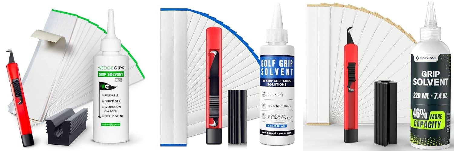- Grip Solvent: Solvent helps the new grip slide onto the club. It also helps the tape stick. Some kits have a solvent. Others don’t. You may need to buy it separately.