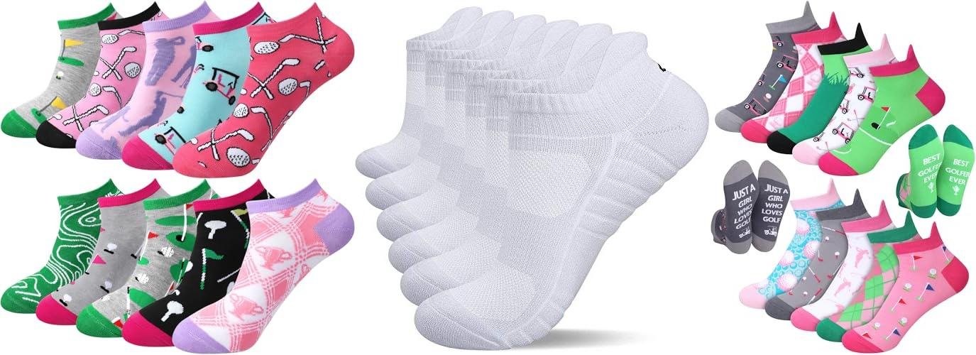 Get ready to tee off in style with the ShinyMatch 10 Pairs Novelty Women Golf Socks! These fun and fashionable low-cut socks are perfect for any female golfer. They also make a great gift. You get ten pairs of socks with different golf-themed designs. They are also comfortable and designed to fit most women. These socks are made for the course or just everyday wear.
