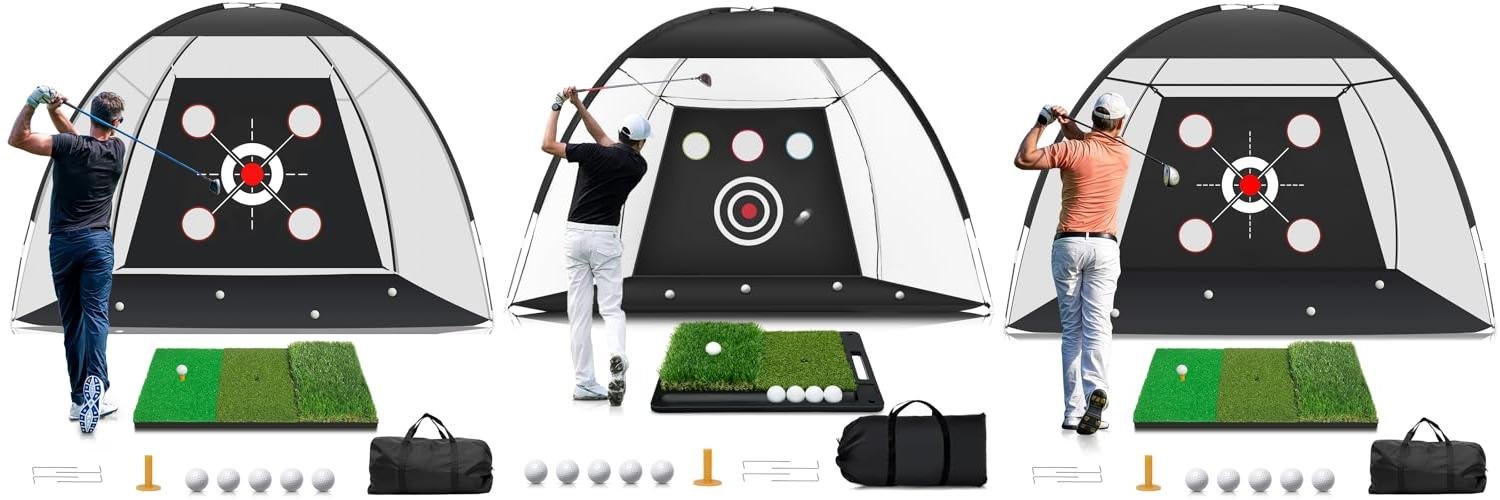 - Includes a 3-in-1 golf mat for practicing different shots.