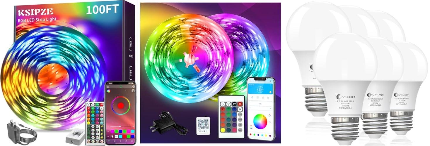 Transform your living space with the KSIPZE 100ft LED Strip Lights. These lights bring vibrant color and dynamic effects to any room. They are perfect for bedrooms, kitchens, or even for parties and holidays. You can easily change the colors and modes to match your mood or the occasion.