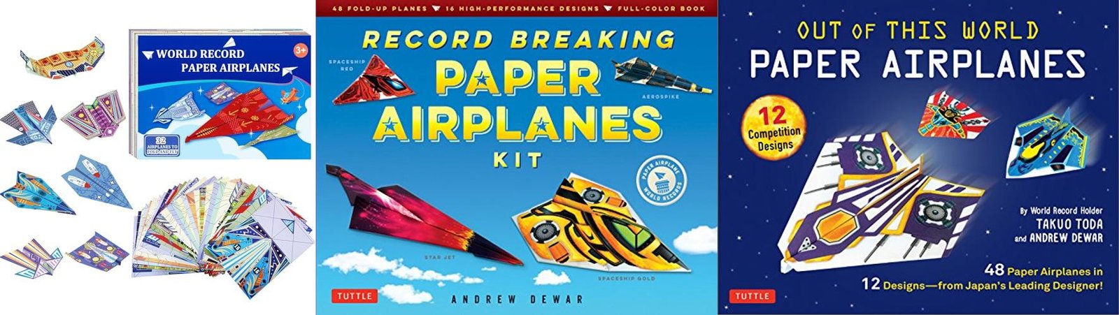 3. Out of This World Paper Airplanes Kit: 48 Paper Airplanes in 12 Designs from Japan’s Leading Designer – 48 Fold-Up Planes; 12 Competition-Grade Designs; Full-Color Book