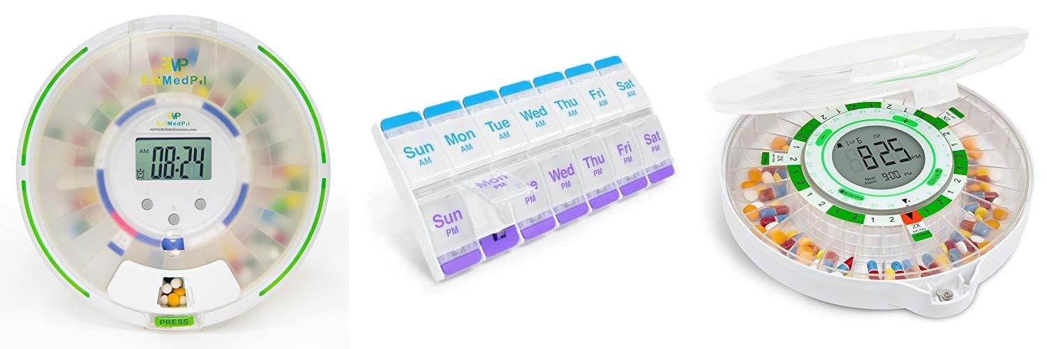 A: Pill dispensers are ideal for this. You can set them to dispense different pills at different times of the day, organizing complex medication schedules.