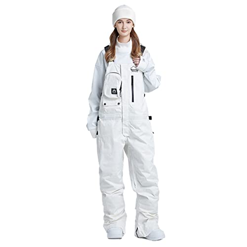 5. Women and Men’s Ski Overalls Waterproof Snow Bibs Ski Pants Windproof Insulated Overalls Pants Outdoor Snowboard Pant White-S